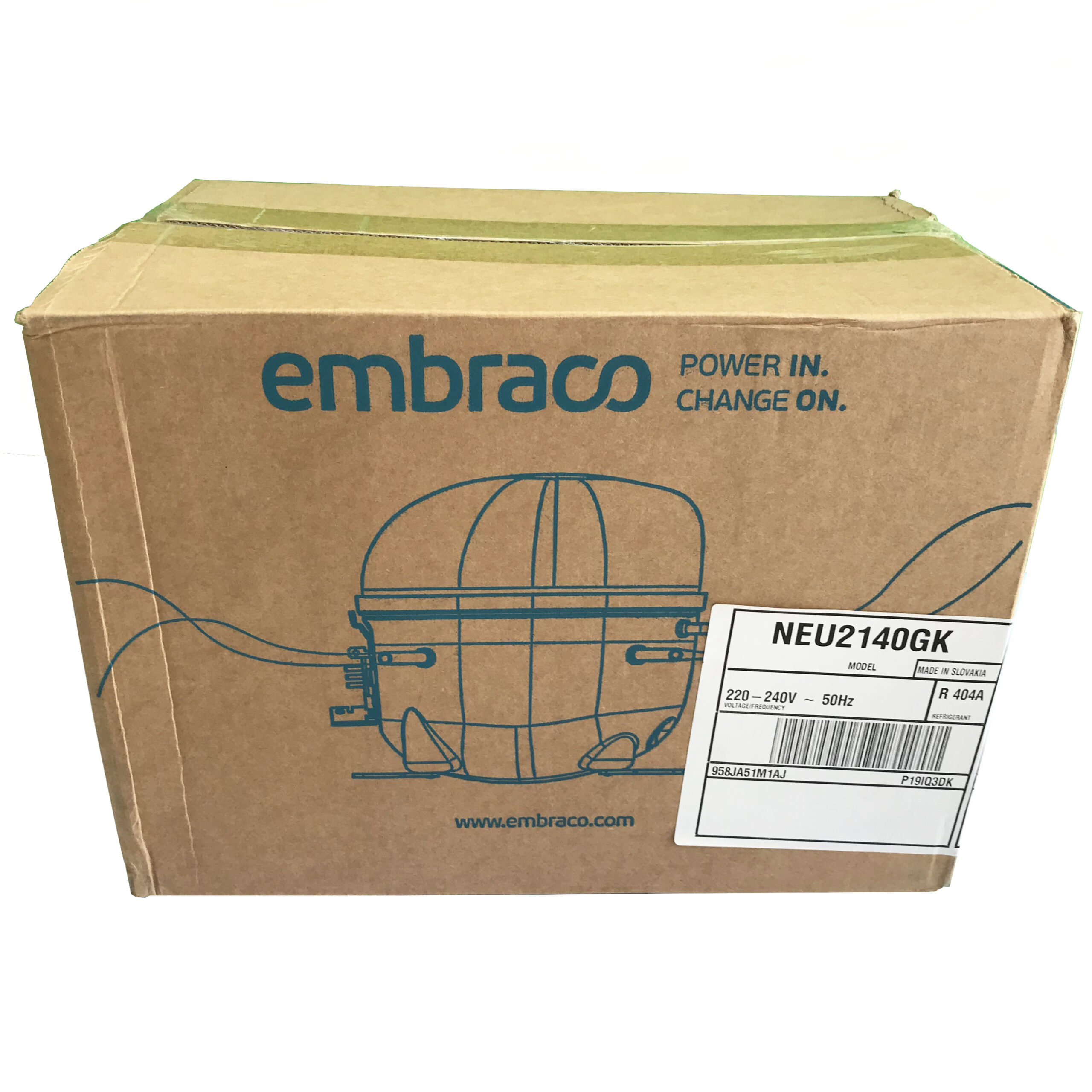 Máy Nén Embraco NEU2140GK – Slovakia, thuộc dòng NE là dòng máy nén tốc độ cố định với hai mức hiệu suất và được thiết kế đặc biệt để sử dụng trong hệ thống làm lạnh thương mại, mang lại sự bền bỉ và độ tin cậy cao cho các thiết bị bán lẻ thực phẩm và dịch vụ ăn uống. Phiên bản cải tiến mới nhất trong dòng máy này là NEX, với hiệu suất năng lượng được cải thiện, công suất làm lạnh cao hơn, dung tích làm lạnh tối đa tăng từ 18,7cc lên 21cc (so với các nền tảng trước đó) và được phê duyệt sử dụng môi chất lạnh tự nhiên R290.