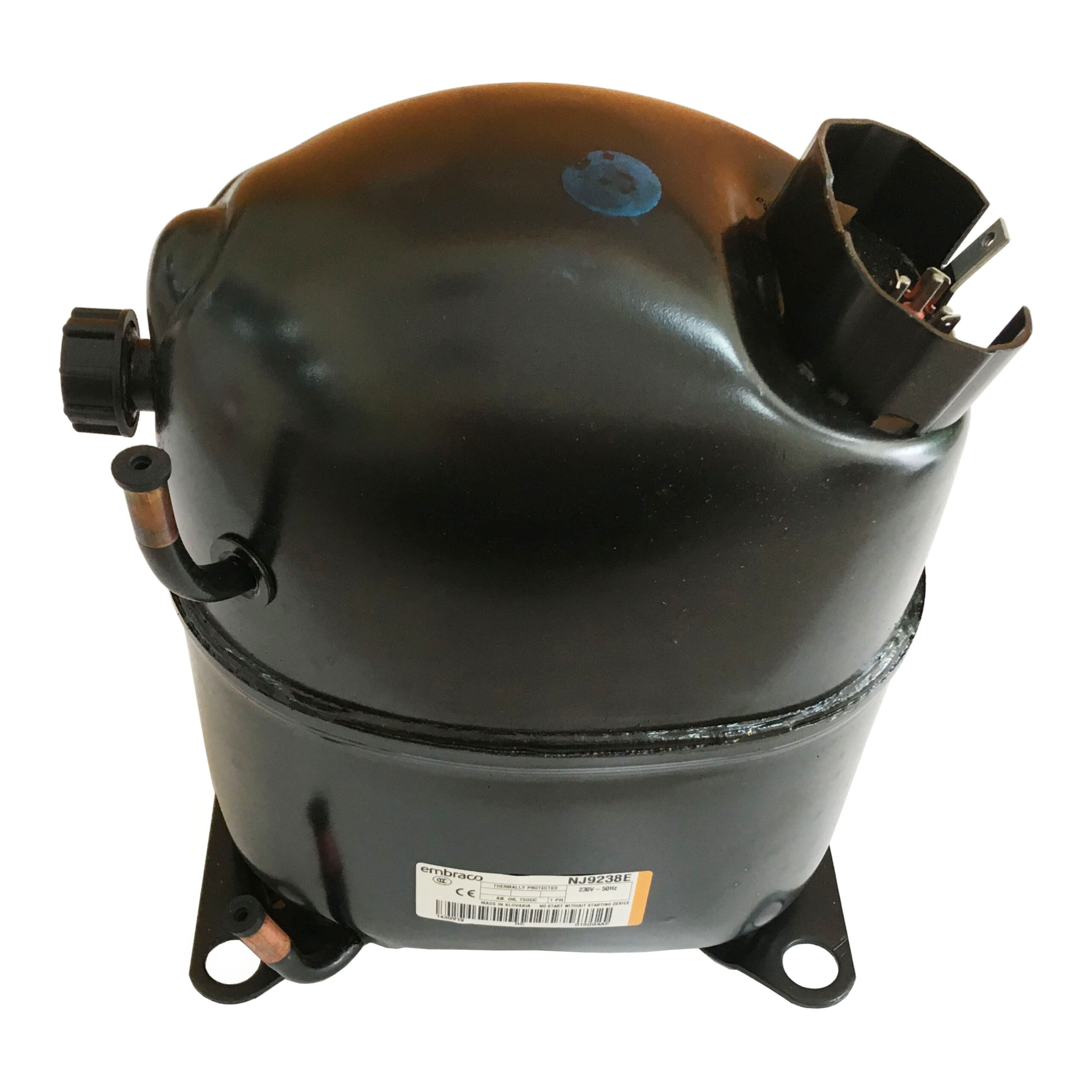 Embraco NJ9238E thuộc dòng NJ, dòng máy nén tốc độ cố định được thiết kế cho hệ thống làm lạnh thương mại, có độ ồn thấp nhất trong cùng loại. Được trang bị động cơ điện có bảo vệ bên trong, dòng máy này lý tưởng cho lĩnh vực bán lẻ, phòng lạnh, máy làm kem và tủ đông. Phiên bản cải tiến mới nhất trong dòng máy này là NJX, với công suất làm lạnh tăng lên đến 2HP chỉ với một máy nén piston đơn, và có sẵn các tùy chọn môi chất lạnh R290 và môi chất lạnh tạm thời GWP thấp.